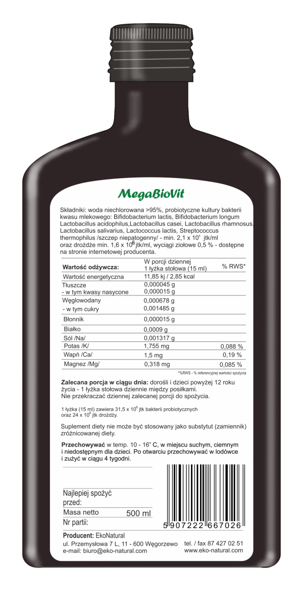 Suplement diety MegaBioVit® – zawiera żywe kultury bakterii probiotycznych z dodatkiem wyciągów ziołowych.