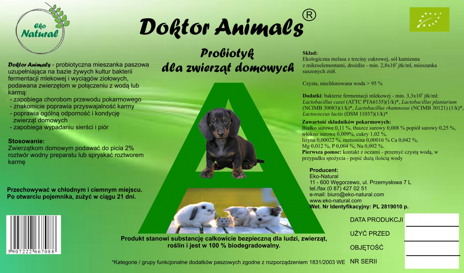 Probiotyk dla zwierząt hodowlanych.: zapobiega chorobom przewodu pokarmowego, poprawia przyswajalność pasz, poprawia ogólną odporność i kondycję zwierząt.